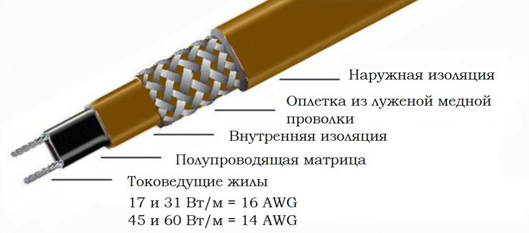 Строение саморегулирующегося кабеля ProTrace HTP